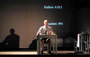 In filmischen Einblendungen sind nun unter anderem ein texanischer Henker zu sehen (Günther Michael Erhardt), der, bequem zurückgelehnt, über die „gerechteste und humanste“ Tötungstechnik schwadroniert, eine Angestellte im Ausländeramt (brillant: Erika Peßler), die mit ihrer Paragraphenreiterei einen Asylberwerber schikaniert, oder ein bekannter Schriftsteller (Erich Ude), der sich nur auf sein Gewissen als letzte Instanz beruft, sich „kein schlechtes Gewissen einreden“ lassen und „endlich normaler Bürger in einem normalen Staat“ sein will.