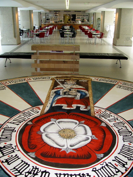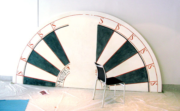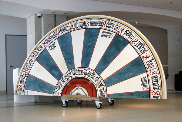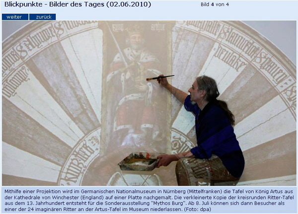 Der Künstler Manfred Schaller malt seit Mittwoch (02.06.2010) im Germanischen Nationalmuseum in Nürnberg nach einer Projektion die Tafel von König Artus aus der Kathedrale von Winchester (England) auf eine Platte.